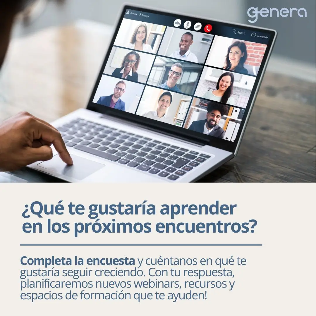 En Genera, queremos acompañarte en el crecimiento y desarrollo de tu empresa misional! Completa esta breve encuesta para contarnos sobre qué temas te gustaría profundizar y qué desafíos te encuentras enfrentando. Esto nos ayudará a preparar contenidos, webinars y recursos de gran utilidad!
